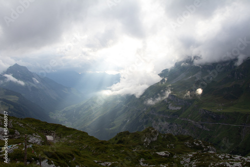 Amazing Landscape in the hearth of Switzerland. Epic scenery with the clouds and fog. Wonderful sunrays through the clouds and later an amazing sunset and sunrise. Perfect roadtrip through Switzerland