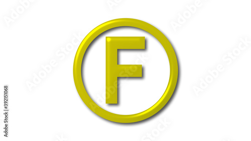 Amazing yellow color shiny 3d letter logo on white background, F 3d logo