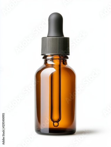 Amber glass bottle with dropper, isolated on white background. Perfect for essential oils, serums, or other liquid products. Clean and simple product