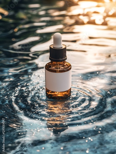 water, ripple, sunset, essential oil, serum, beauty product, skincare, aromatherapy, wellness, natural, cosmetic, cardboard box, presentation, advertising, marketing, branding, golden light, tranquil, serene, spa, relaxation, alternative medicine, holistic, health, beauty, nature, copy space, minimalism, elegance, luxury