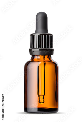 Amber glass dropper bottle with black cap mock up isolated on white background