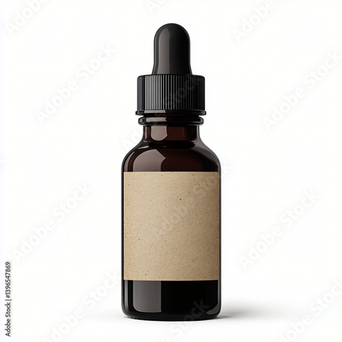 Amber Glass Dropper Bottle with Kraft Paper Label Mockup Packaging Product Design