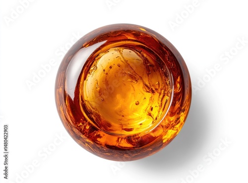 amber, round, bowl, liquid, viscous, glassy, transparent, smooth, reflective, top, down, view, gold, orange, yellow, food, gel, sirup, sweet, dessert, beauty, cosmetic, organic, natural, product, display, studio, isolated, white, background, texture, detail, closeup, highlight, shadow, dripped, smoothness, luxury, shiny, golden brown, thick, clear, light, glasses, container