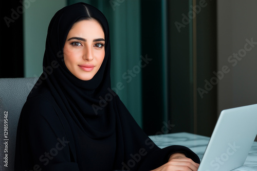 Ambitious entrepreneur in stylish corporate attire working on digital projects. Professional confidence, empowerment, and modern leadership in a luxury business environment.