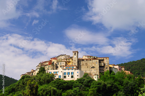 liguria, italy, europa, castle, fort, house, city, blue, heaven, village, hill, mountain, cloud, church, tower, house, summer