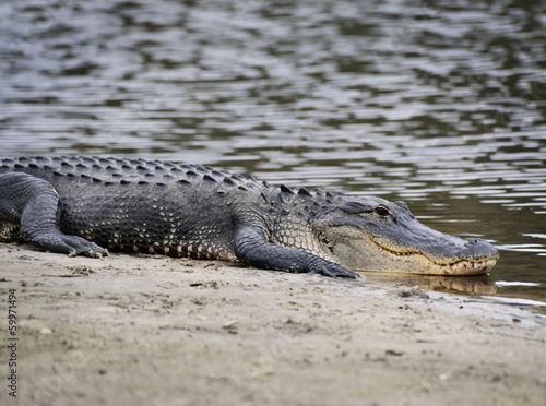 animal, alligator, gator, large, river, water, sand, resting, nature, florida, closeup