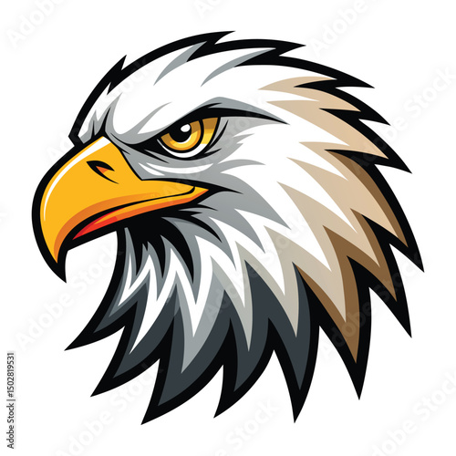 eagle, bald eagle, head, mascot, illustration, design, vector, graphic, bird, wildlife, animal, predator, american, patriotic, freedom, power, strength, icon, logotype, symbol, nature, bird of prey, bird of prey, feather, beak, eye, talon, wing, intense, fierce, sharp, wild, aggressive, majestic, regal, cartoon, stylised, graphic design, branding, corporate identity, profile, closeup, isolated, white background