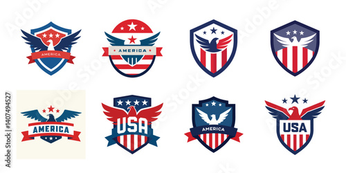 American eagle shield set, USA banner vector illustration collection for 4th of July