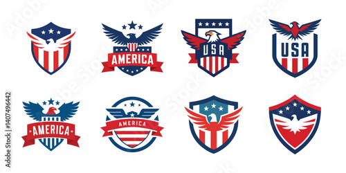 American eagle shield set, USA banner vector illustration collection for 4th of July