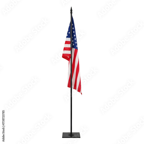 American Flag on a Black Pole with a Square Base