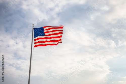 america, american, american flag, background, blue, bright, cloud, cloudy, flag, national, national flag, north america, outdoors, patriotic, pole, red, sky, stripes, sunny, symbol, us, us, us, vibrant, view, white