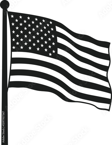 us, america, flag, vector, silhouette, patriotic, independence, freedom, national, government, pride, liberty, banner, veteran, memorial, celebration, democracy, heritage, symbol, military, icon, simple, minimal, flat, country, oneness, historic, illustration, flag pole