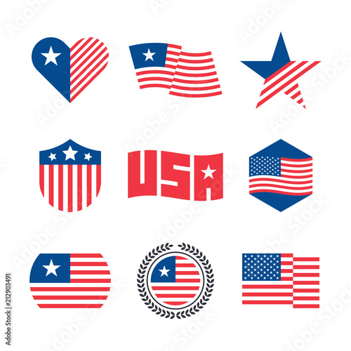 American flag vector emblems, USA flaf logo design elements