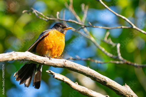 bird, robin, single, perched, feeding, nestling, nest, springtime, alert, tree, snag, alone, birding, nature, no people