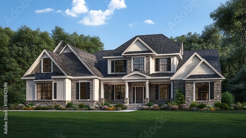 American Style House Exterior Front, Showcasing Symmetry and Elegance