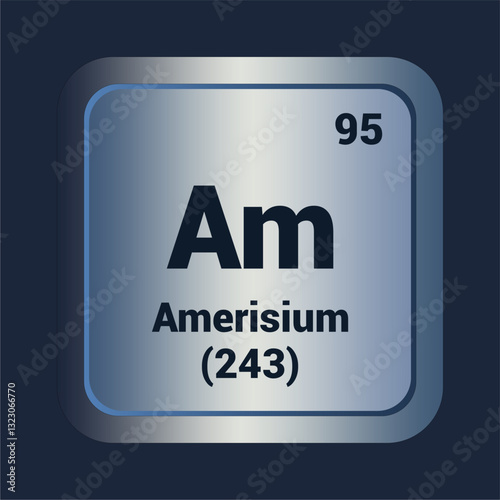 Amerisium Am icon. Number Ninety Five. Mass (243) detail. Vector Background.