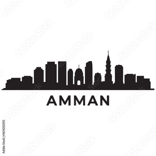 Amman skyline, monochrome silhouette. Vector illustration. Vector black silhouette. with white background.