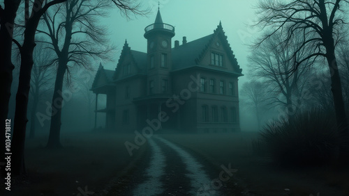 castle, architecture, mystery, forest, road, quietness, mist, building, old house, halloween, gothic, night, wood, fog, eerie, horror, thriller, weird