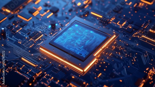 An abstract AI circuit board background featuring interconnected blue lines and electronic elements.