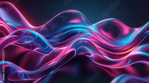 An abstract background featuring fluid, flowing shapes in vibrant neon colors