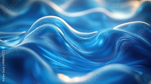 An abstract background with smooth blue and turquoise lines highlights high-tech design.