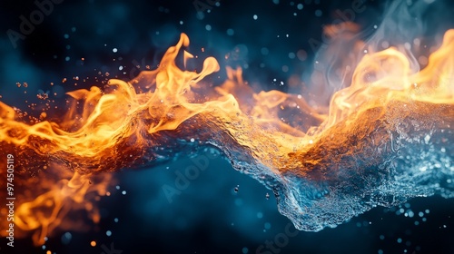 abstract, fire, water, composition, blend, harmony, dynamic, fluid, contrast, movement, energy, vibrant, texture, colours, nature, elemental, surreal, artistic, visualisation, duality, fusion, wave, flames, intensity, juxtaposition, liquid, warmth, coolness, creativity, expression, balance, dramatic, heat, chill, aethereal, transformation, luminescence, flow, ripple, glow, serenity, chaos, art, inspiration, emotion, organic