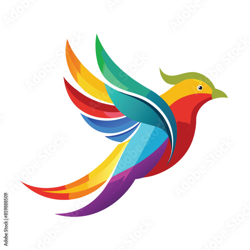 An abstract design of a bird in flight, with colorful wings representing a rainbow, isolated on a white background.