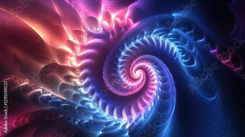 An abstract fractal pattern glowing in neon blue and pink hues, creating a futuristic and vibrant effect.