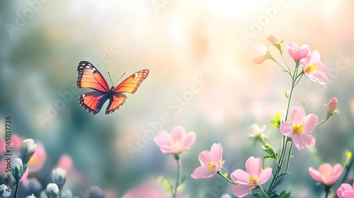 may, april, easter, butterfly, flower, sky, abstract, fresh, summer, sun, nature, field, floral, banner, light, bright
