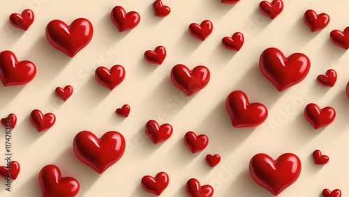 An abstract panorama with vibrant red hearts sets the stage for a heartfelt Valentine's Day celebration.