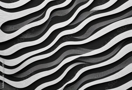 an abstract pattern with intertwining black and white wavy lines on a two-tone background