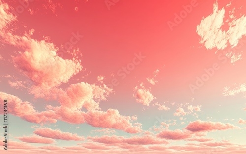 An abstract top-down view of the sky with a smooth, graphic-style gradient transitioning from deep crimson red to soft coral and pale rose.