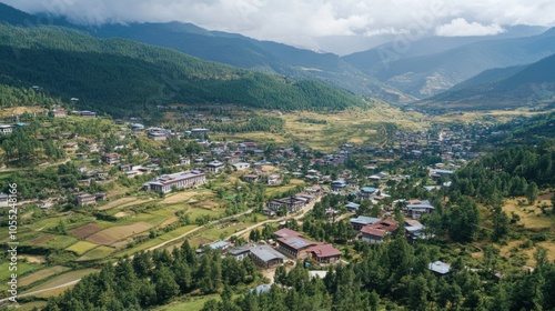 An aerial view of Thimphu, Bhutan s capital, with a mix of traditional architecture