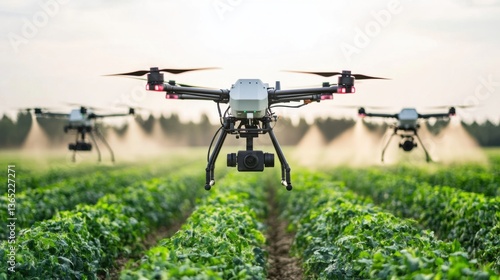ai, powered, drone, swarm, agriculture, multiple, monitoring, spraying, crop, large, field, agricultural, tech, style, photo, farming, technology, ample, white, space, center, text, high, quality, image, highlighting, precision, automation