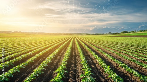ai, powered, sustainable, farming, solution, showing, large, field, smart, irrigation, automated, planting, system, agricultural, tech, style, photo, wide, shot, plenty, space, text, high, quality, image, highlighting