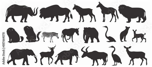 animal, silhouette, collection, illustration, set, zoo, isolated, elephant, mammal, white, farm, goat, rabbit, bear, otter, wildlife, fox, squirrel, bird, safari, lion, cervid, africa, dog, flamingo, aquarium, shark, whale, kangaroo, cat, seal, pelican, snake, terrier, starfish, pig, black, horse, nature, rhino, dolphin, zebra, cow, chicken, fish