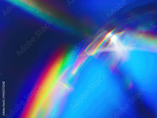 An appealing visual of colorful light refraction with blue rainbow effects, ideal for creative, commercial, or editorial purposes.