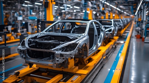 automobile, assembly line, industry, factory, modern, metallic, assembly line, technology, automation, industrial, efficiency, innovation, engineering, auto industry, vehicle, conveyer, transportation, shiny, mechanical, workplace, yellow, bright, streamlined, progress, clean, organised, futuristic, advanced technology, metal
