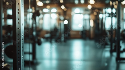 An atmospheric view of a gym with blurred equipment in the background, showcasing fitness elements that invite individuals to pursue a healthy lifestyle and workout actively.