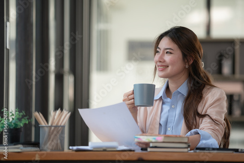 person, woman, businesswoman, confident, desk, job, laptop, online, positive, resting, thinking, workplace, break, device, looking, mobile, office, sitting, tasting, work, business, computer, drinking, female, happy, holding, portrait, adult, attractive, girl, lifestyle, asian, background, beautiful, beverage, hot drink, relaxing, modern, morning, technology, young, aroma, casual attire, cup, expression, finger, pretty, smile, friendly