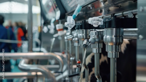 milking, machine, automated, teat, cup, cow, udder, dairy, farm, technology, advanced, trade, show, farming, equipment, innovation, agriculture, farm animal, efficiency, modern, production, demonstration, sustainability, machinery, robotic, progress, clean, environmentally friendly, precision, automation, showcase, smart, milk, industry, system, productivity, futuristic, hygiene, rural