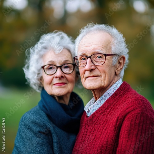 portrait, ageing, togetherness, love, human relationships, family, grandmother, grandfather, retired, senior, elderly, couple, grey hair, wrinkle, goggles, outdoors, nature, park, happy, content, trust, companionship, warmth, sweater