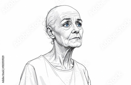 elderly, woman, blue, eye, thoughtful, expression, wisdom, resilience, life, experience, portrait, contemplative, feature, age, character, depth, emotion, greyscale, line, dignity, ageing, beauty, humanity, serenity, strength, individuality, contemplation, mature, care, facial, detail, story, intensity, grey, hair, gaze, vulnerability, study, expressive, introspection, generative, ai