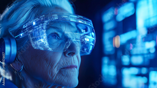technology, futuristic, woman, elderly, senior, innovation, digital, person, home, lifestyle, modern, virtual, entertainment, adult, fun, headset, future, cyberspace, game, happy, female, old, contraption, mature, caucasian, indoor, reality, goggles, gamer, video, aged, device, retired, office, smile, equipment, portrait, expression, using, goggles, casual attire, pensioner, cheerful, people, joy, comfort, retirement, bearded