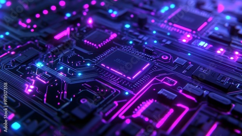 An electronic circuit board with glowing components - a futuristic concept for innovation.