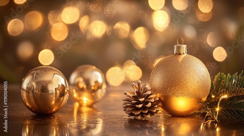 An elegant background of glowing Christmas lights in golden hues, creating a dreamy and festive holiday ambiance