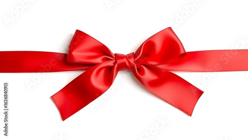 An elegant red satin ribbon tied in a perfect bow, isolated on a pure white background with luxurious texture details.