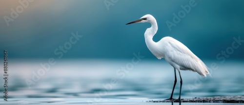 An elegant river bird posing by the water's edge in a natural setting, copy space, natural lighting
