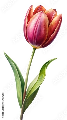 tulip, flower, floral, botanical, illustration, watercolor, painting, art, vibrant, red, pink, green, stem, leaf, isolated, white background, nature, closeup, detail, springtime, blossom, bloom, plant, flora, floral pattern, decorative, elegant, design, artwork, spring, beauty, romantic, floral pattern, floral background, realistic, single flower, beautiful, artistic, natural, graphic, fresh