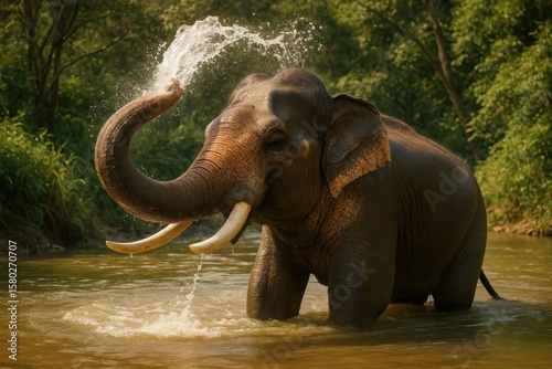 elephant, water spray, forest river, animal, mammal, wildlife, wild, big, nature, trunk, elephant, zoo, safari, baby, large, family, park, pachyderm, isolated, african elephant, forest, animal, tusk, asia, grey